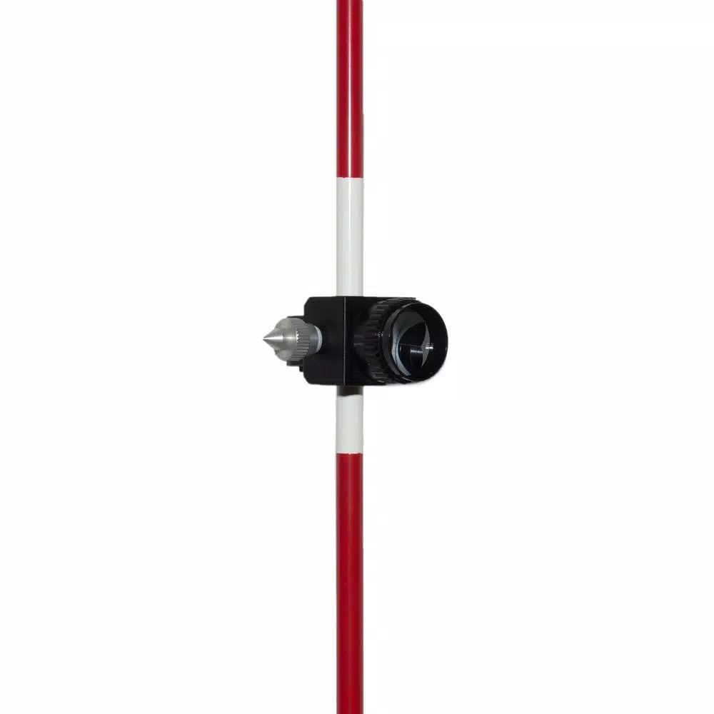The AdirPro Screw Collar Lock Aluminum Prism Pole has alternating red and white markings for surveying jobs. It has graduations in m. With lightweight, wear-resistant aluminum construction, this prism pole guarantees you durable, lightweight performance. A carrying case is also included. Surveying professionals will appreciate this prism poleβs adjustable sections that extend to its full height and collapses for easy transportation. Lock in the length of your prism pole with its convenient twist knob. The knob is made of supple rubber for tightening or loosening for you to secure or adjust the length of the prism pole, respectively. You can easily mount a prism on the prism poleβs 5/8 in. top brass thread. Use the adjustable tip on the bottom to plant the prism pole into the ground. There is also a 40-minute level vial on the side of the prism pole for quick, on-the-job leveling. The Prism pole also features a padded hand grip and pneumatic resistance when collapsing.