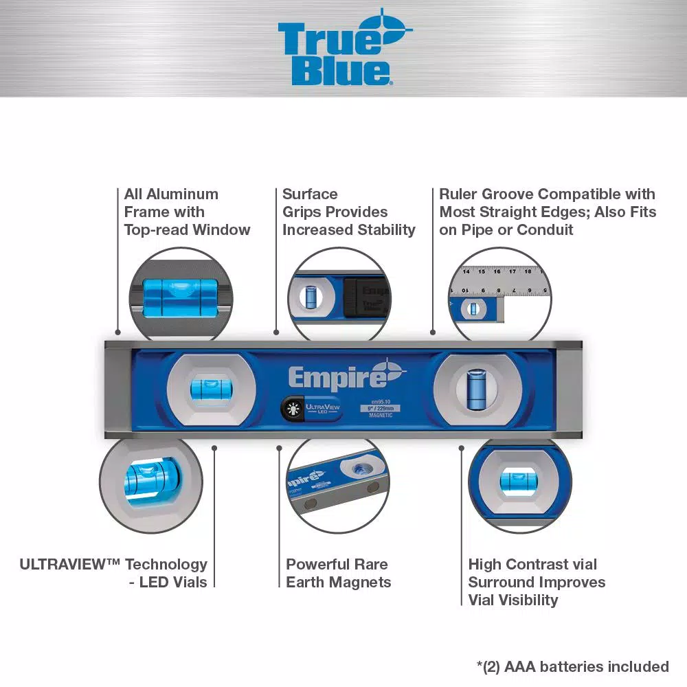 - Includes: true blue 10 in. rare earth magnetic torpedo level
