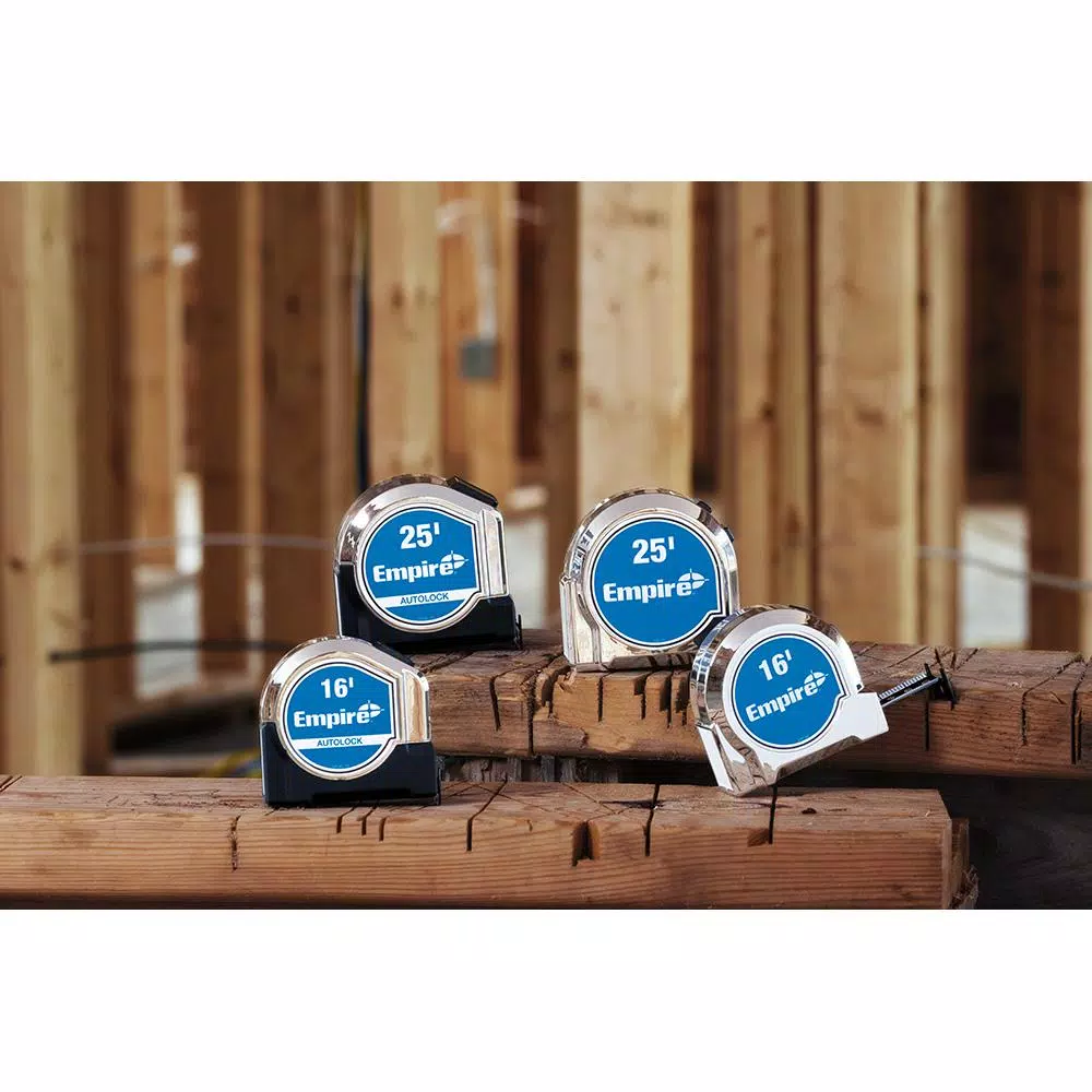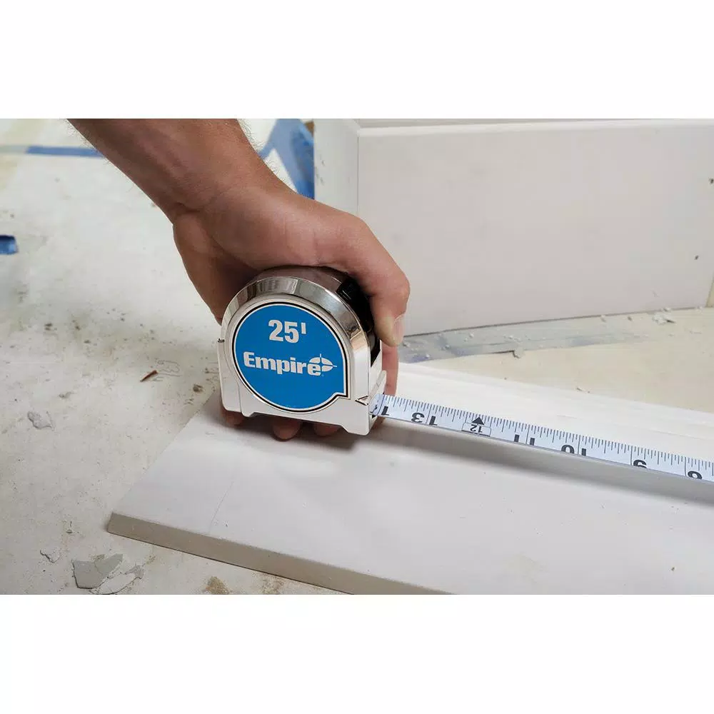 Empire Level is committed to developing layout and measurement solutions that provide trusted accuracy from project planning through project finish. Empire Levels new Chrome Tape Measures are designed to provide the very best durability, delivering abrasion resistance through a nylon-coated blade and 5-screw housing for drop protection. For added utility, each tape includes a marking surface to assist when laying down a mark, scribing notes and taking measurements.