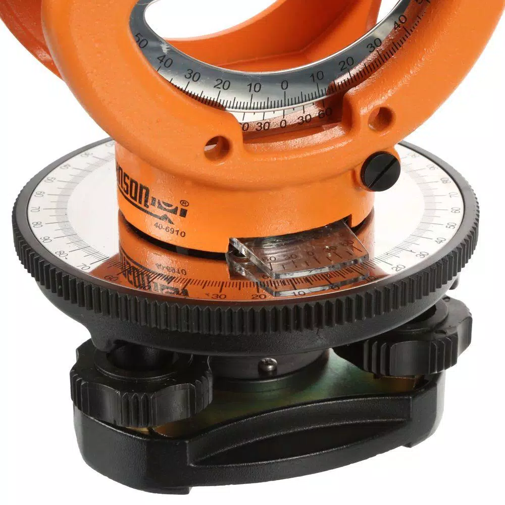 - Vertical arc reads 0 β 45Β° (horizontal circle graduated to single degrees)