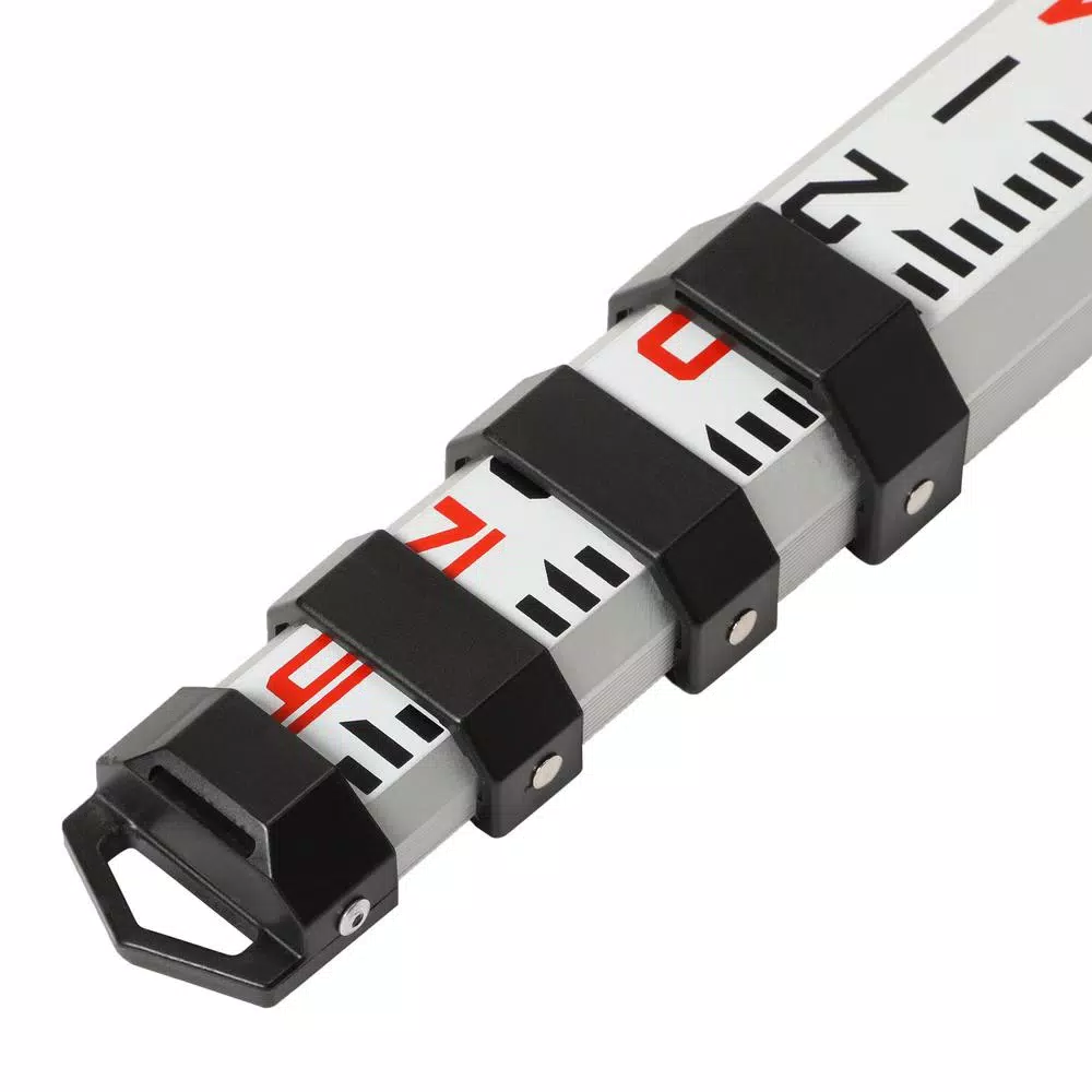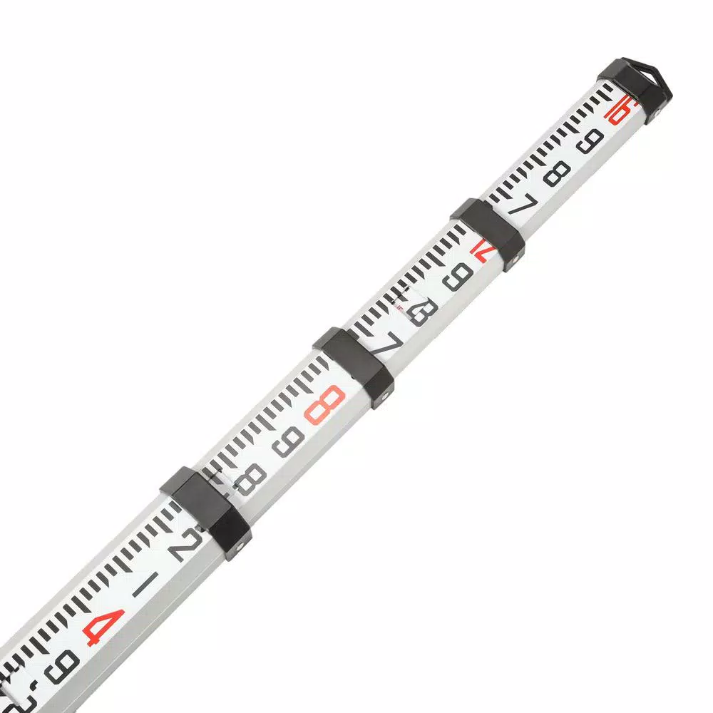 Use this Johnsonβs 16 ft. Aluminum Grade Rod for excavating jobs, including basements and more. It also works as a tool where rotary lasers and detectors are used in measuring elevations. The dimension on the rod is universal, allowing you to use it with any brand detector and detector bracket. One side of the rod features in./ft. graduation with a white background, while the second side has metric graduation on a yellow background. This dual-side graduated is constructed of durable aluminum, and the rod assures years of use in the toughest work environments.