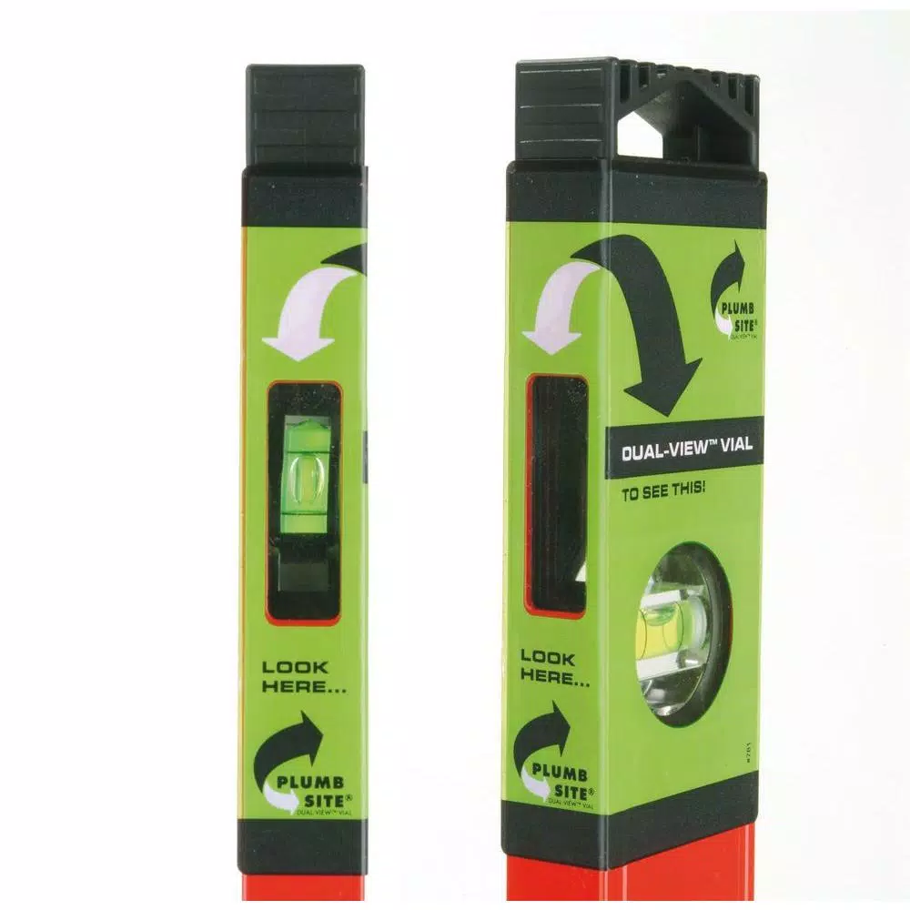 This ideal sized contractor box level offers a great value at a great price. The level comes with our PATENTED Plumb Site Dual-View vial which provides the user the traditional side view of the plumb vial and the unique ability to view plumb from the front, making it easier and more accurate to read along with eliminating neck and eye strain. Inlaid magnets provide a secure grip to metal surfaces.
