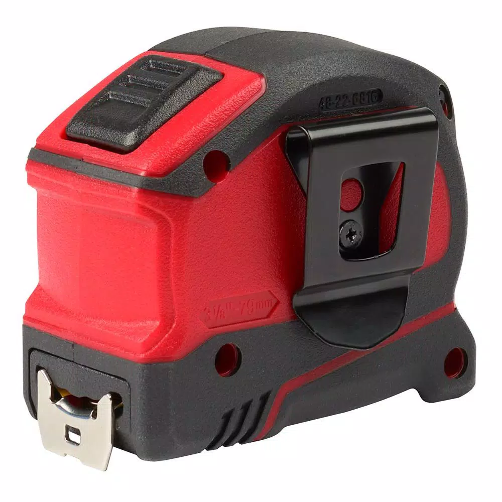 The Milwaukee 16 ft. Compact Auto-Lock Tape Measures deliver up to 12 ft. of reach. The auto-lock design automatically locks the userβs blade in place for quick and efficient measuring. These tapes are equipped with wear resistant nylon blade protection and an Impact-resistant 5-point reinforced frame to withstand the jobsite. The tape blade also features a Fractional scale