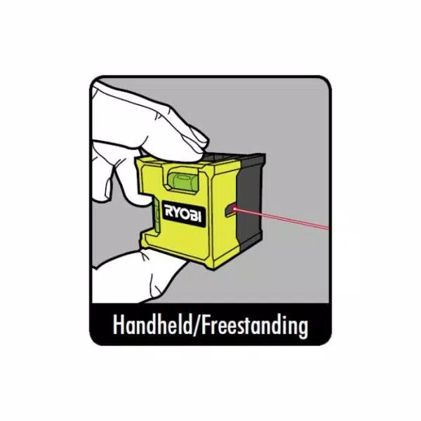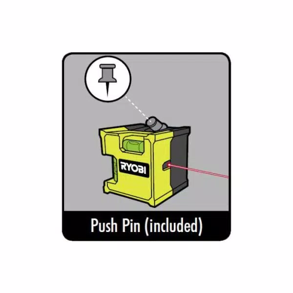 RYOBI introduces the Laser Cube. The Laser Cube is a handheld and freestanding laser. Its size, portability, and accuracy make it a great household item. The RYOBI Laser Cube features horizontal and vertical bubble vials for accurate leveling. A push pin is included for convenient and easy mounting straight into your surface. Removable adhesive strips (not included) are also a great option for mounting the laser cube. Backed by the RYOBI 3-Year Manufacturer’s Warranty, the Laser Cube includes a push pin, three LR44 button batteries, and an operator’s manual.