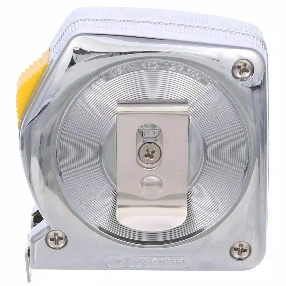 This 16 ft. tape measure is made of durable Mylar polyester film for extended blade life. The forward blade lock makes locking and unlocking a cinch, and the chrome-plated ABS case resists high impact. A Tru-Zero hook slides to accommodate both inside and outside measurements, helping the end user avoid errors caused by the thick hook.