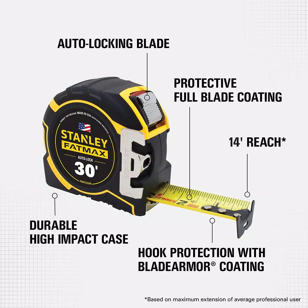 STANLEY POWERLOCK tapes fit your toolbelt, your hand, and the job. 10 ft. of reach* and a durable case make this tape dependable on any jobsite. Tru-Zero hook end provides accurate inside/outside measurements and the secure blade looks keeps tape blade from moving while measuring. Protective full tape blade coating extends tape life against abrasion and heavy use**.