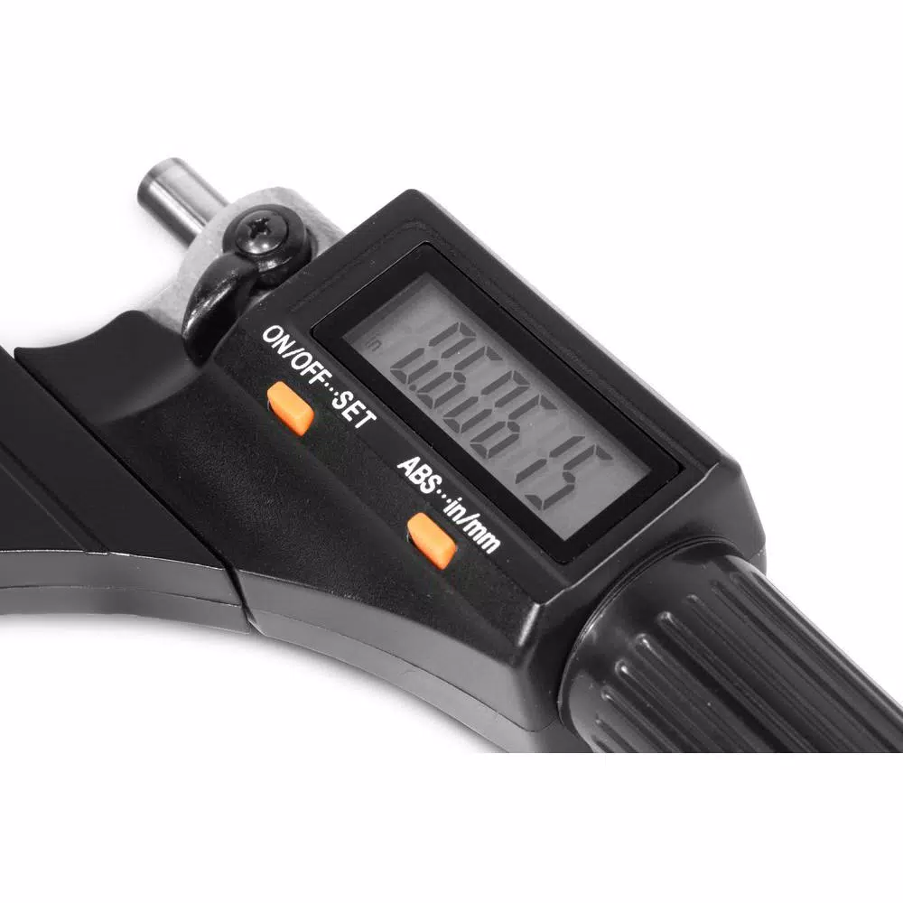 Remember when you could measure the slightest imperfections; Maximize accuracy with the WEN Caliper-Style Screw Gauge Micrometer. The large onboard LCD readout prominently displays measurements from 0 in. to 1in. in size. Switch between metric and imperial units with the simple push of a button, going from a resolution of 0.00005 in. to 0.001 mm. The carbide-tipped anvil and spindle (6.5 mm Dia) provide both incremental and absolute measurements while the ratchet and thimble allow for either quick or fine-tune adjustments. Pop on the included ball bearing tip (4.5 mm Dia) to maximize accuracy when measuring rounded or uneven subjects. The hard-bodied storage case keeps your micrometer protected from dust and contaminants while the extra CR2032 battery provides replacement power for your digital LCD readout. And, because its a WEN product, your caliper-style screw gauge micrometer comes backed by a two-year warranty and a friendly customer help line, all to make sure you remember WEN.